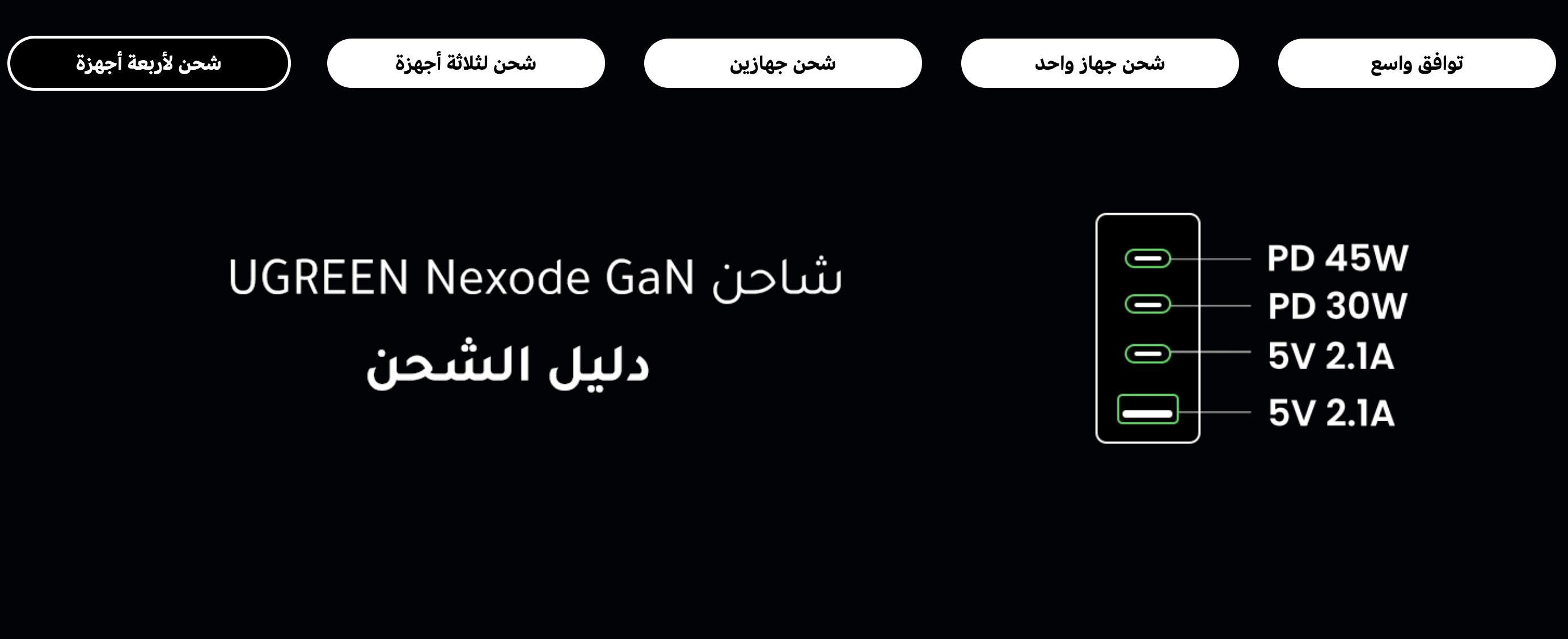 شاحن يوغرين 100 واط 4 منافذ (Ugreen charger 100 Watt )