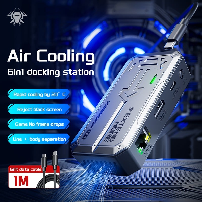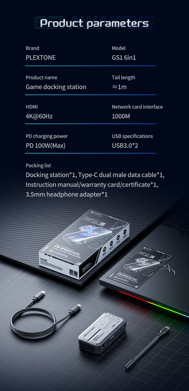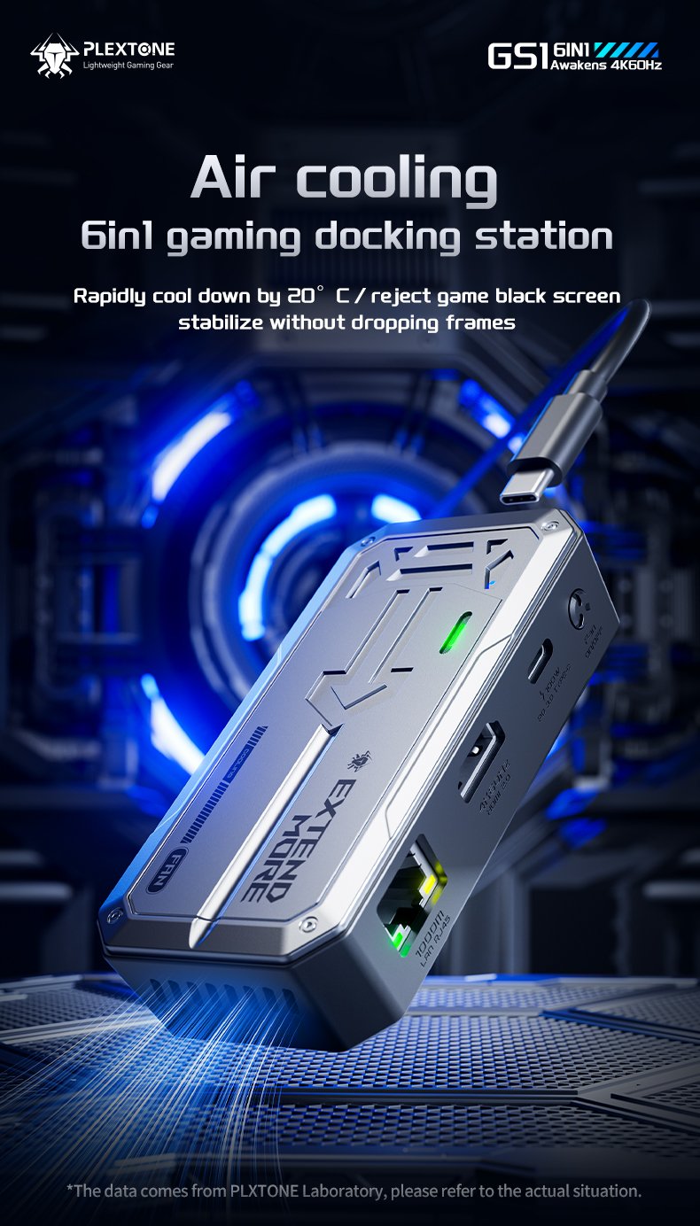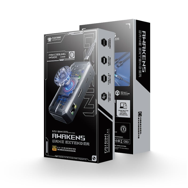 إصدار 2024 وصلة بلكستون 6 في 1 تايب سي مع نظام تهوية ( Plextone 6 in 1 Hub Air Coling) كيبل قابل للتغيير