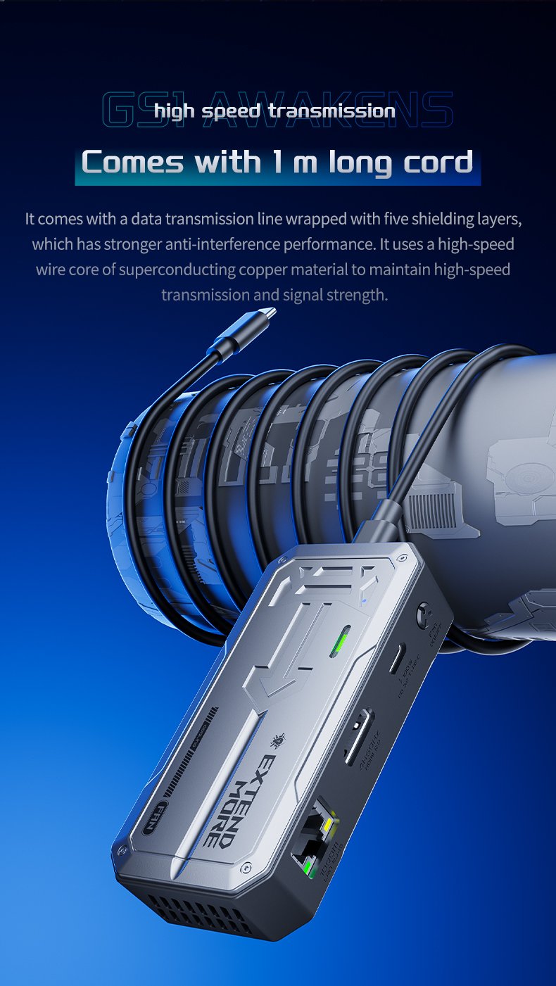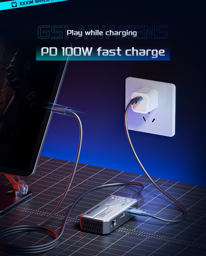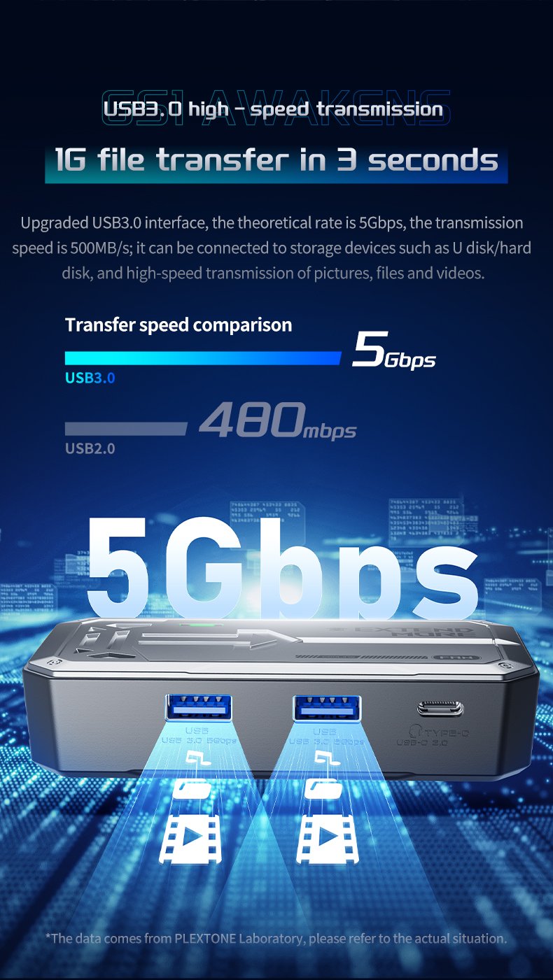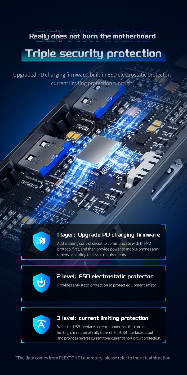 إصدار 2024 وصلة بلكستون 6 في 1 تايب سي مع نظام تهوية ( Plextone 6 in 1 Hub Air Coling) كيبل قابل للتغيير