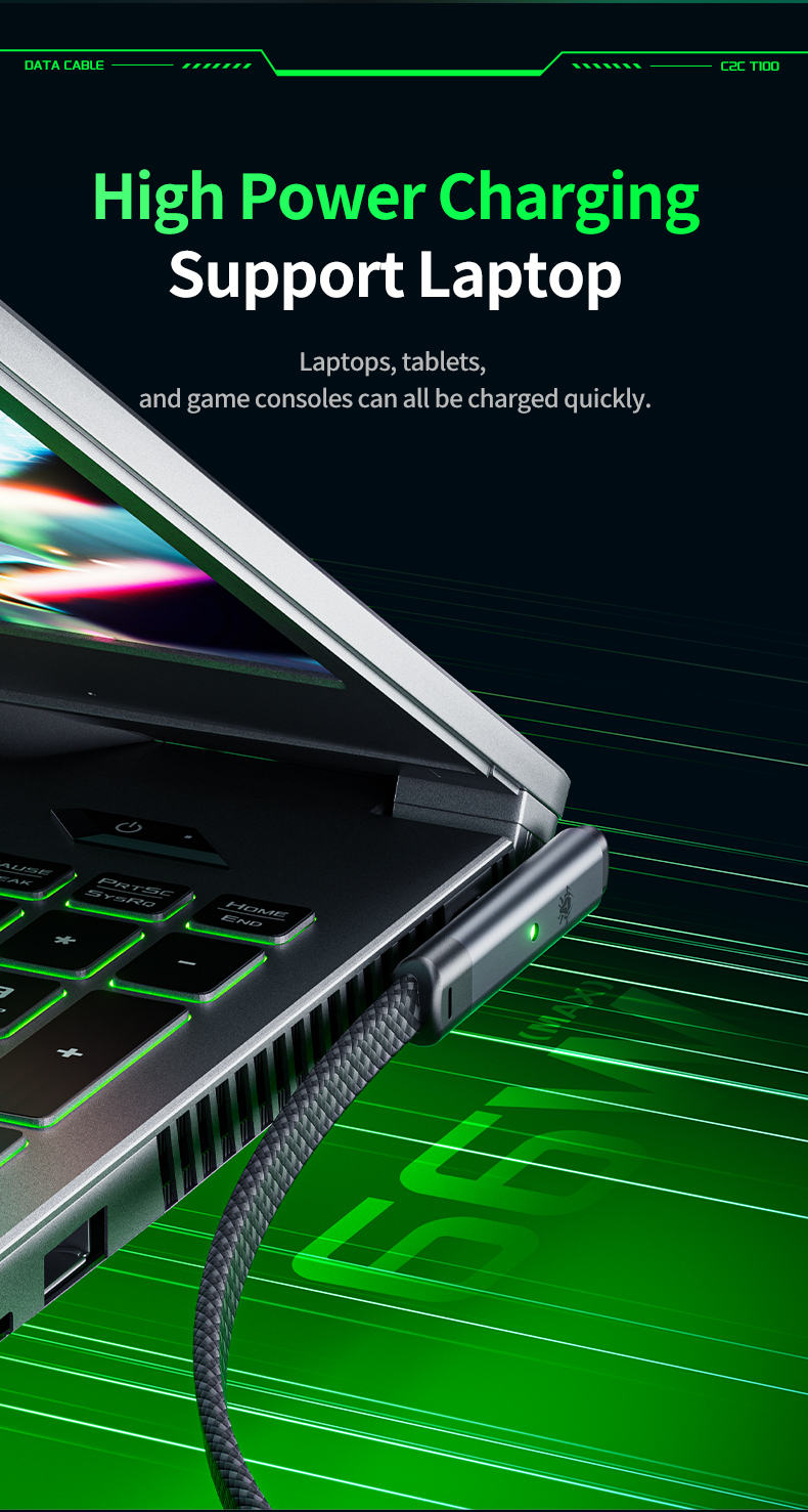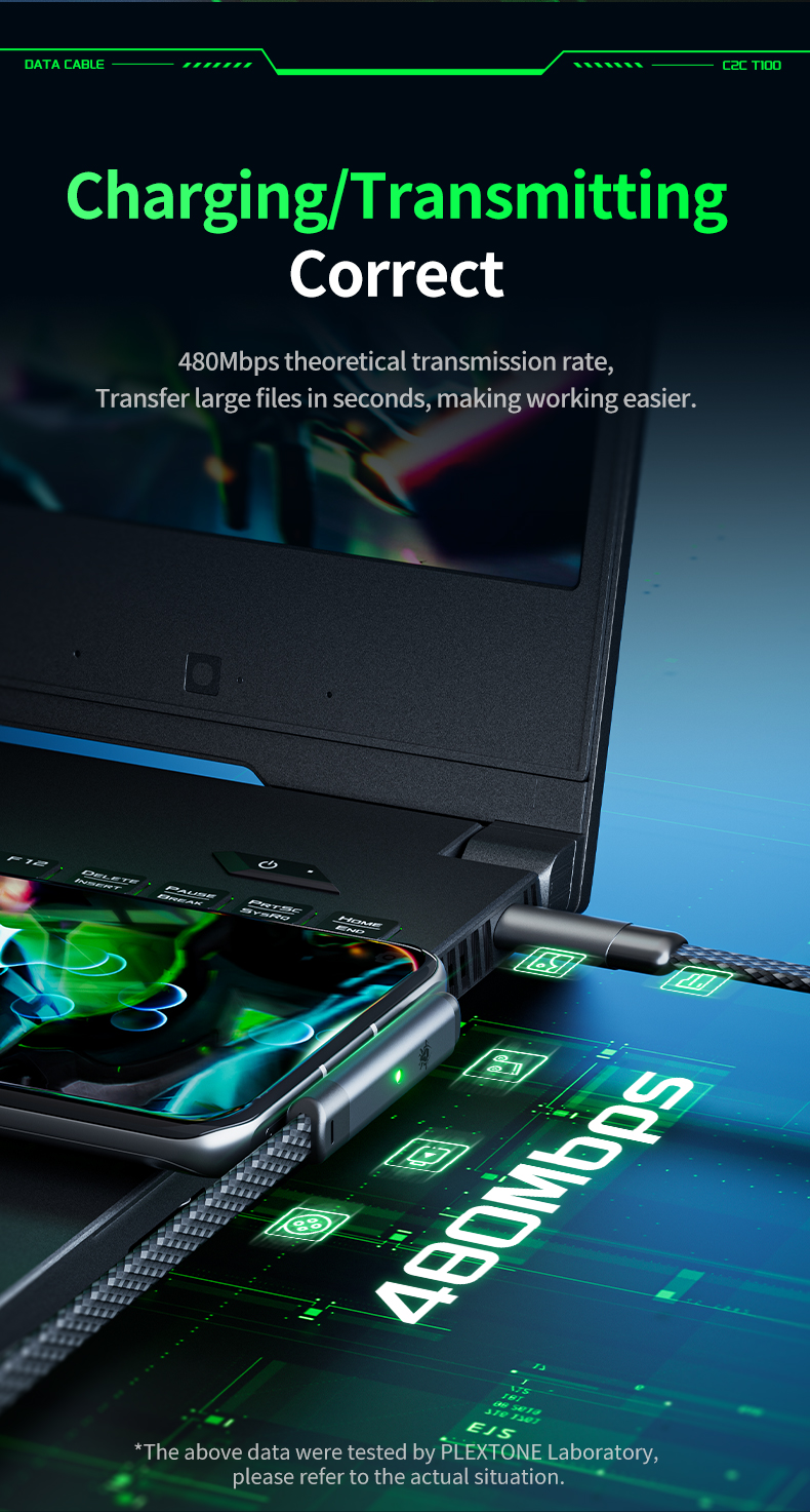 كيبل شحن سريع بلكستون 66 واط تايب سي إلى يو اس بي (Plextone cable type-C to USB-A 66 WATT)